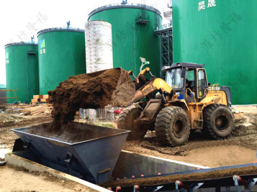 1、发酵工段—槽式发酵2、粉状有机肥生产设备—上料机(使用装载机上料)3、发酵料粉碎(双粉碎机,一用一备)4、成品筛选(操作平台)5、全自动包装秤(粉状肥专用+带搅拌)6、